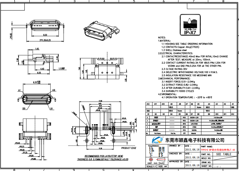 7.接触阻抗:300MΩMAX.INITIAL;400MΩAX